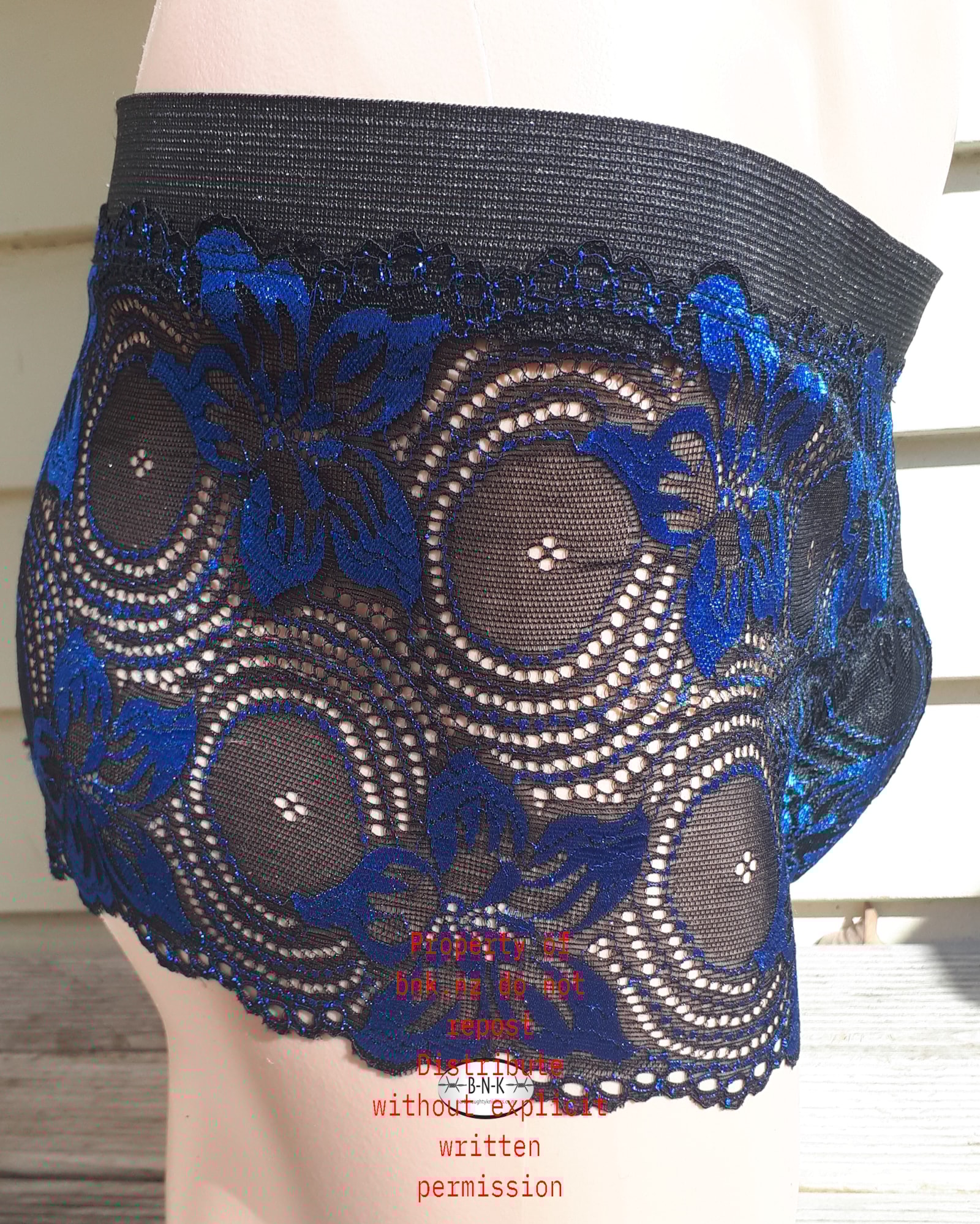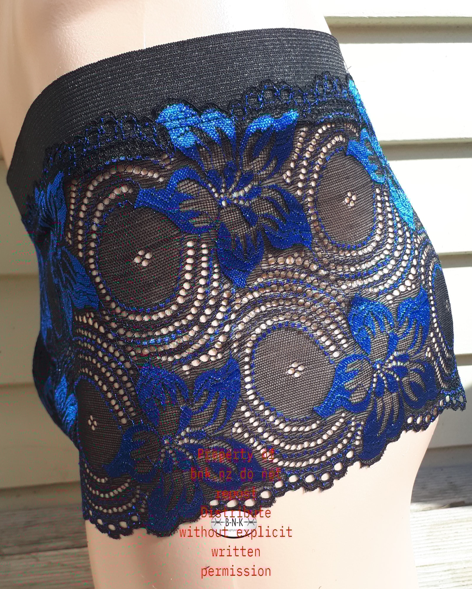 Comfortable Stretchy Blue Lace with wide Elastic waistband.